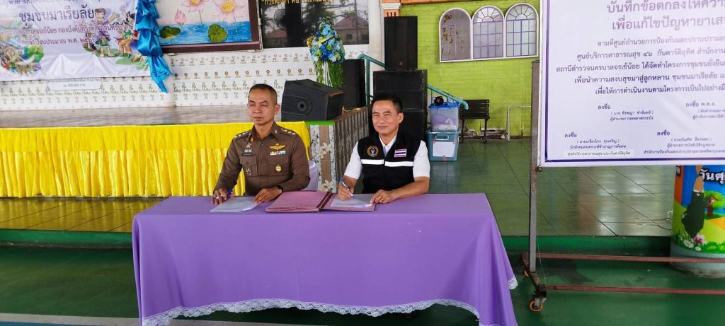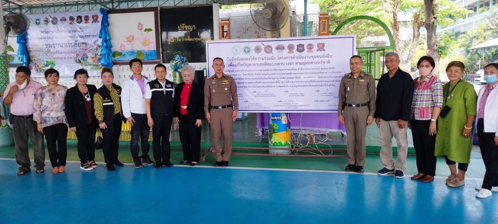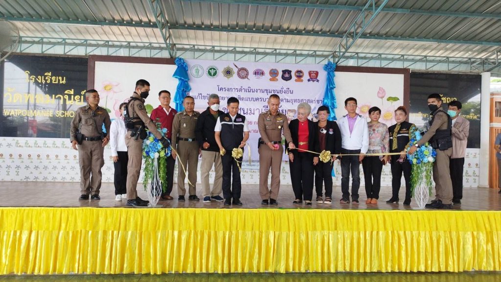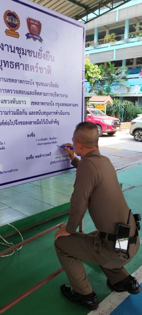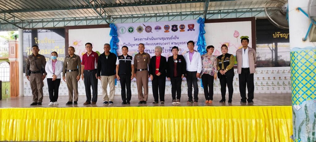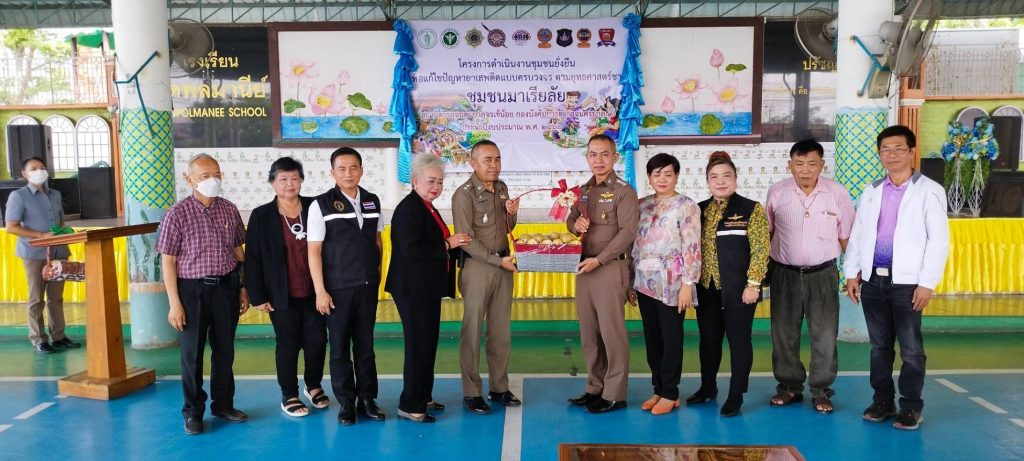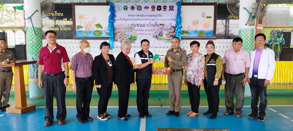 ร่วมพิธีเปิดชุมชนยั่งยืนฯ และร่วมลงนามในบันทึกข้อตกลง MOU ตามโครงการชุมชนยั่งยืน เพื่อแก้ไขปัญหายาเสพติดแบบครบวงจร ตามยุทธศาสตร์ชาติ ของ สน.จรเข้น้อย ณ ลานกิจกรรม โรงเรียนวัดพลมานีย์ แขวงทับยาว เขตลาดกระบัง กรุงเทพมหานคร รวมผู้เข้าร่วมพิธีเปิดฯ ประมาณ 150 คน